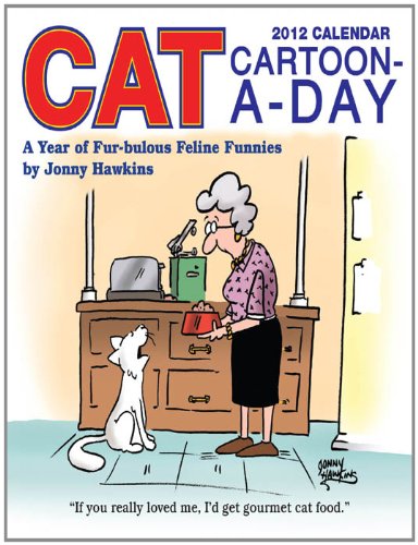 Enjoy a year's worth of delightfully cartooned cat capers by humorist Jonny Hawkins. The Cat Cartoon-A-Day 2012 Day-to-Day Calendar's fur-bulous feline funnies creatively capture the diverse personalities of domesticated housecats--from cute and curious to fickle and finicky. Of course, as any cat-lover knows, regardless of kitty's temperament, the mewing furry bundle will cunningly find the way to the heart of the human who feeds and cares for it.